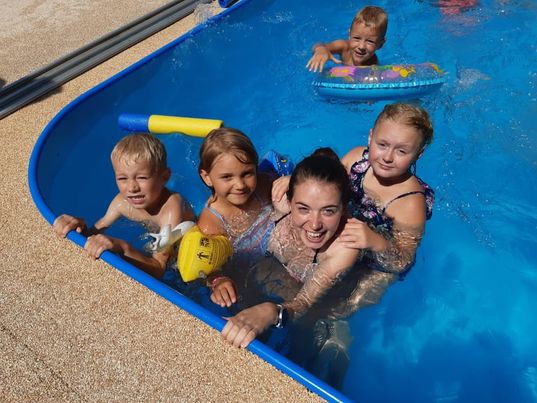 Během týdne, kdy tábor probíhal, bylo opravdu krásné počasí, odpolední program byl tedy většinou venku, kde se opět hrálo spoustu her, a také v rámci sportovního dne proběhlo i koupání v bazénu.
